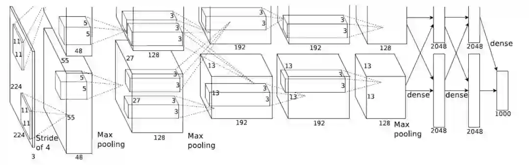 ·第四层卷积:3×3的卷积核384个,两个GPU各192个。该层与上一层连接没有经过pooling层。