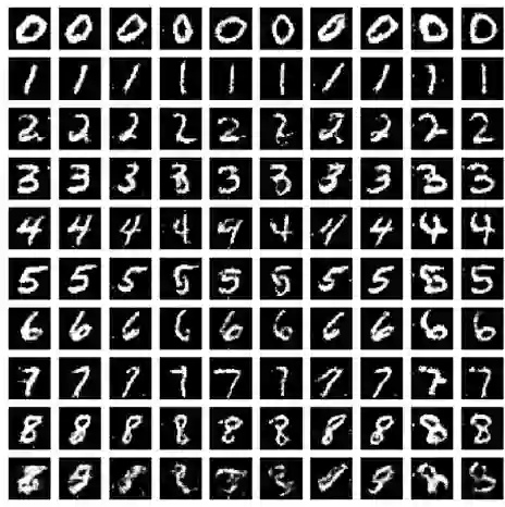 下面展示一个cDCGAN的例子(前面帖子中写过的)