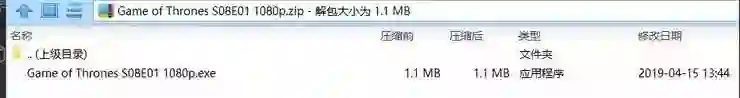 更有甚者,会通过利用“权力的游戏”第一集1080P高清版本去进行钓鱼攻击,从下图压缩包可见,很明显是一个带exe的恶意软件,而实际上不小心的用户往往会点击,从而感染病毒。