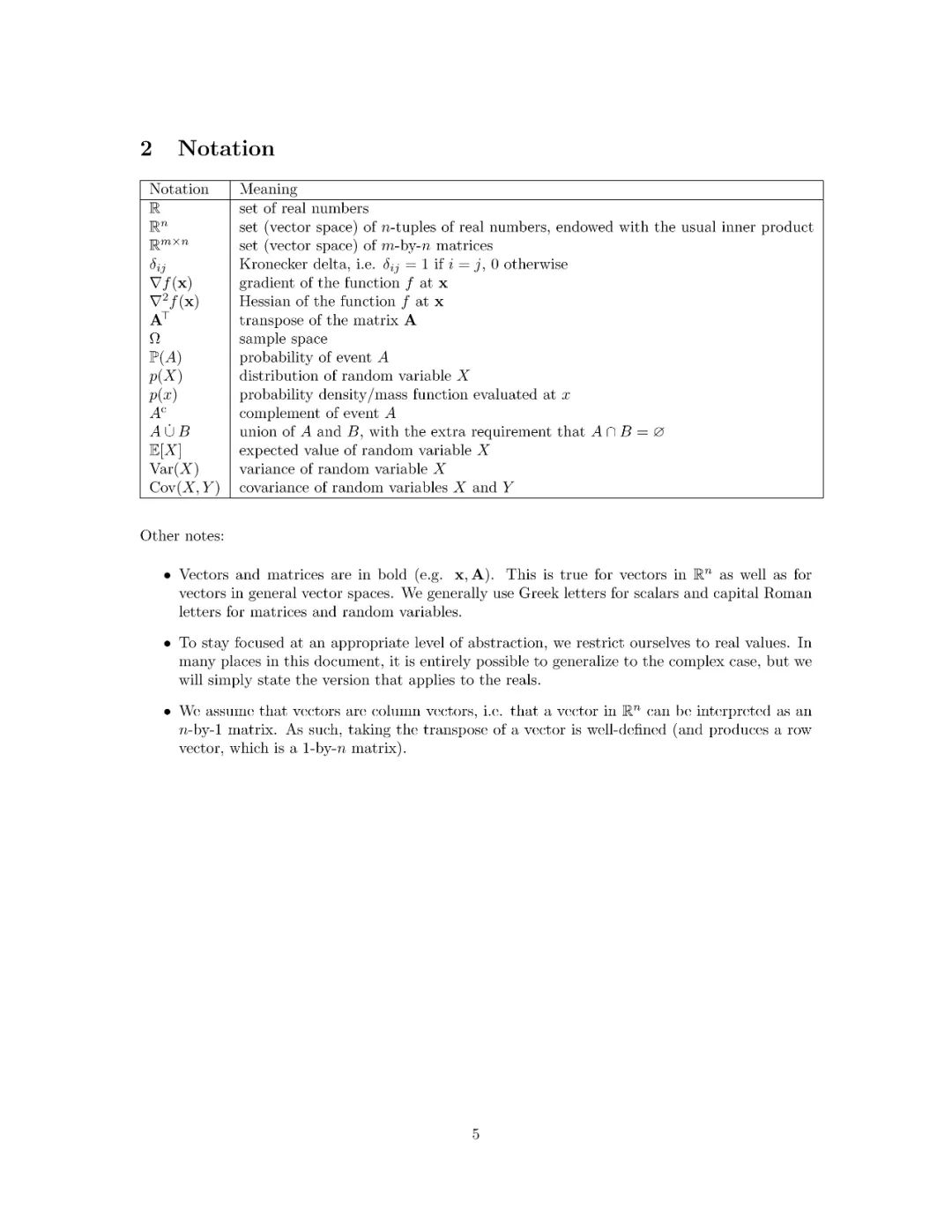 我们的假设是读者已经熟悉多变量微积分和线性代数的基本概念(达到UCB数学53/54的水平)。我们强调,本文档不是对必备类的替代。这里介绍的大多数主题涉及的很少;我们打算给出一个概述,并指出感兴趣的读者更全面的理解进一步的细节。