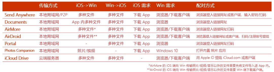 App Store 上的文件传输类 App 鱼龙混杂,虽说功能基本一致,但质量却参差不齐。今天我整理了我认为最值得推荐的几款文件传输工具,尽管这么说,其实它们的实际表现各有局限,也各有千秋,这里先列出一张表格做对比,供各位按需选择。