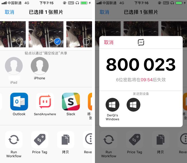 Send Anywhere 的 iOS 客户端使用体验有贴近于 AirDrop 般的无缝感。你可以在任何文件的「分享」界面中直接选用 Send Anywhere 发送,甚至完全不用退出原本的 App 就能完成 发送-配对-传输 整个过程,这是很多同类 App 所不具备的。