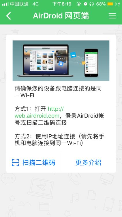 同一局域网内,PC 端在浏览器中打开指定网址,移动端扫描网页上二维码就能完成配对。配对后能够直接读取移动端设备的照片、视频、音乐、剪贴板等内容。如果你还有其他文件的传输需求,你可以像 Documents 那样先将文件分享至 AirMore App 内,然后就能在浏览器网页中读取。