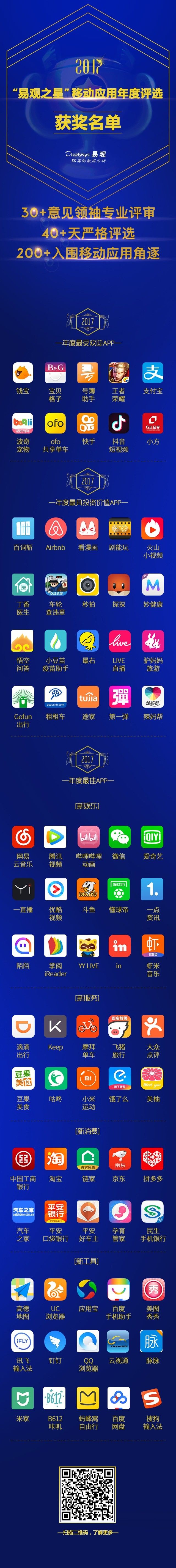 2017“易观之星”评选是基于易观千帆大数据系统,依托易观独家研发的实力矩阵模型,通过企业复合增长率、用户规模及实力矩阵并结合多位意见领袖的评定结果,最终筛选出获奖应用。而“年度最受欢迎APP”则由大众投票产生,可查看实时数据,保证评选过程的透明公正。