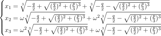 我们再看一下,一元三次方程 ,一元三次方程的解太复杂了,这里写不下,大家可以参考维基百科,但愿大家能够打开。