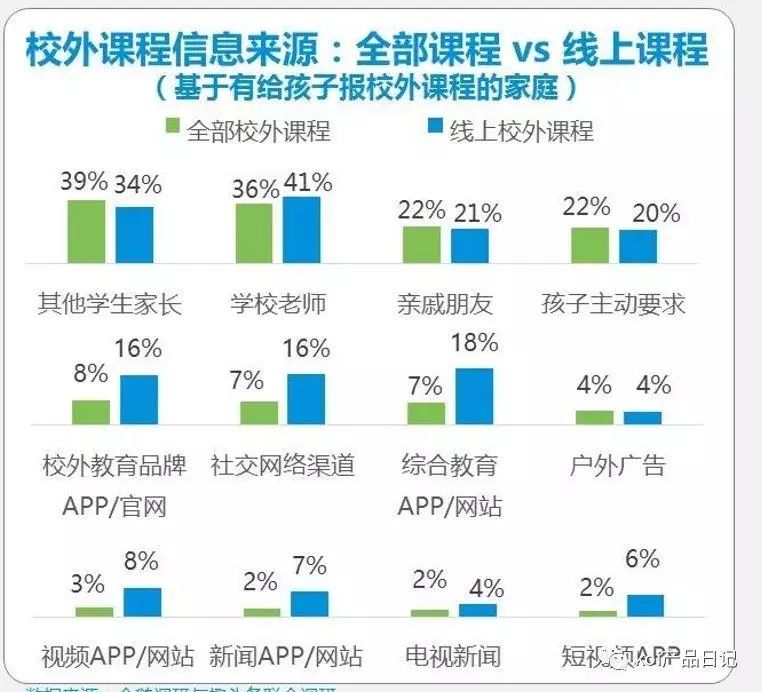 老师、其他家长、朋友是校外课程的最大推力,这点在线上和线下教育并无差异。