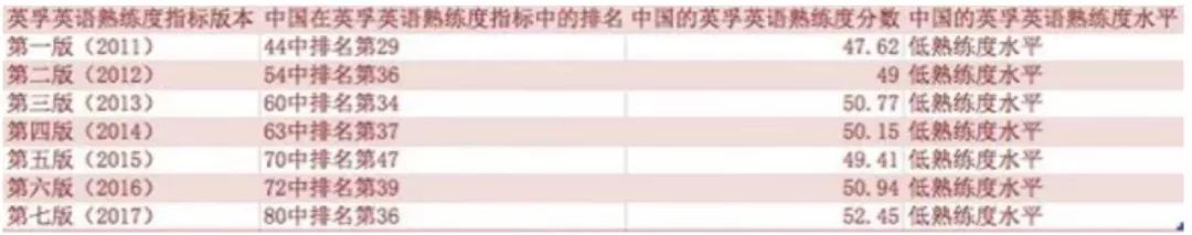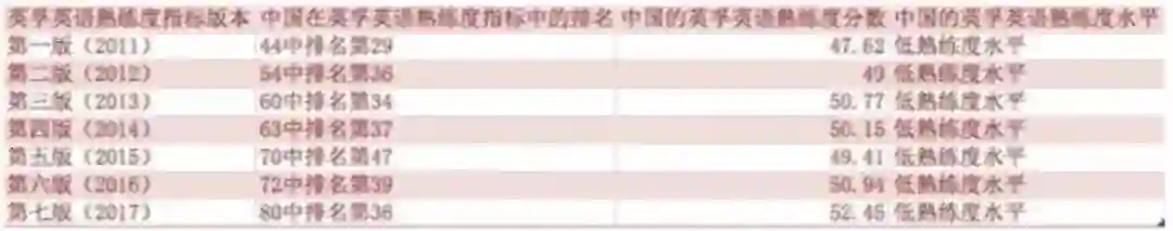 但诸多调研显示,中国人的英语水平在稳步提升。《2017中国大陆地区雅思考生学术表现及英语学习行为白皮书》显示,中国大陆地区雅思考生在2012年至2016年的5年间在各项英语技能上均有小幅提升。根据2017英孚英语熟练度指标(EF EPI)显示,中国的英语熟练度得分为52.45,排名比2016年上升了三个名次,在80个非英语母语的国家/地区中位列第36位,虽然整体仍处于低熟练度水平,但已达到自2011年指标首次发布以来的最高水平。