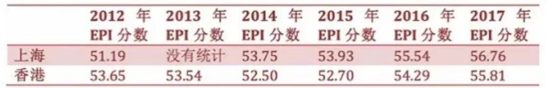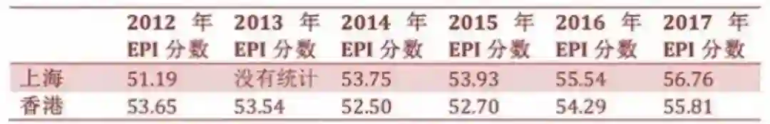 上海的英语熟练度指数已经连续第四年排名领先,并呈现稳定的增长。来源:界面