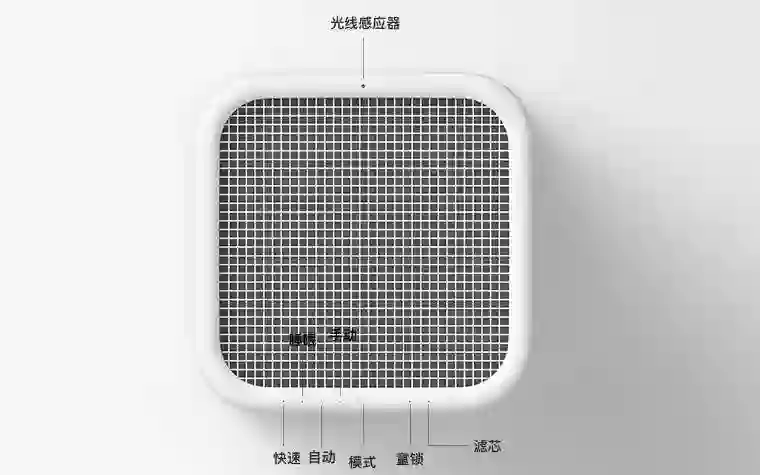 畅呼吸三面和顶部都是网格状通风口。相比市面上不少产品,网格更加细密,还有网格保护板,防止家里小孩误将手指或其他杂质伸进机器,造成安全事故。