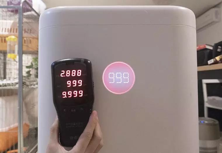 为了测试畅呼吸检测和去除 PM 2.5 的能力,官舍君找了一台空气质量检测仪一同检测。