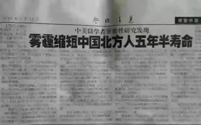来自麻省理工学院、清华、北京和希伯来大学的教授,采用中国过去数十年的污染数据和健康数据研究指出,中国空气污染,将缩短北方居民平均寿命 5.5 年。