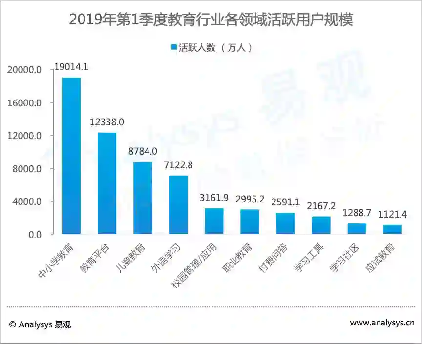 在移动端,根据易观千帆数据显示,2019年第1季度互联网教育行业活跃用户人数达到3.7亿人,环比增长13.93%,同比增长22.1%,用户规模较上一季度显著扩大,增速加快。
