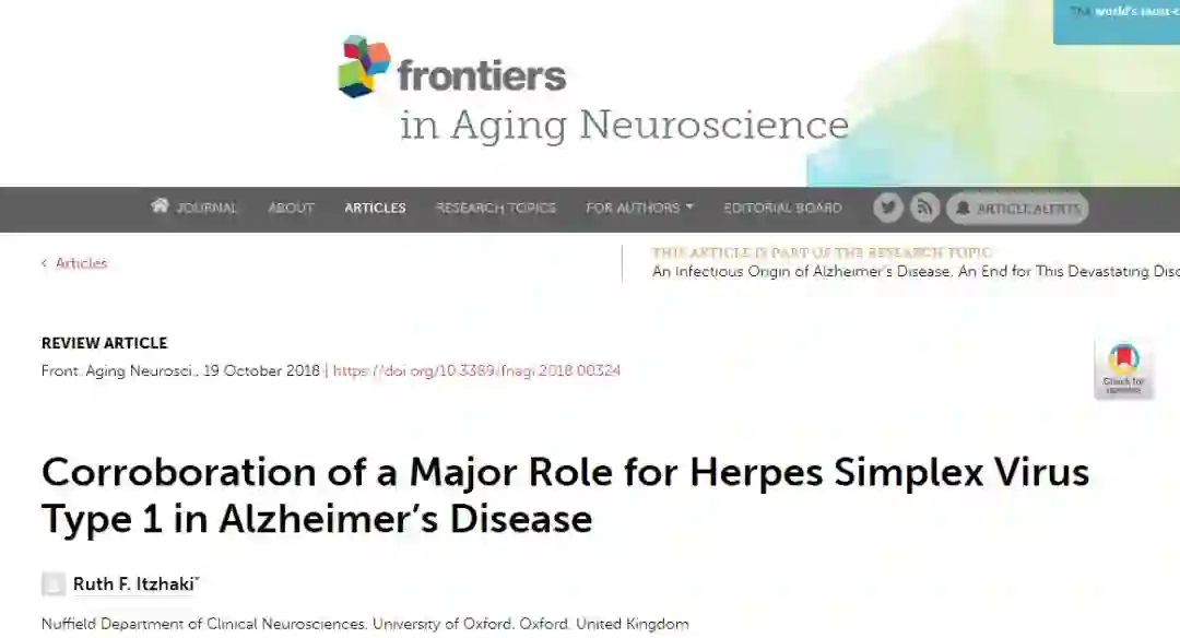 研究结果以“Corroboration of a Major Role for Herpes Simplex Virus Type 1 in Alzheimer’s Disease”为题发表在《Frontiers in Ageing Neuroscience》杂志上。这一综述有望为人类最昂贵的疾病之一提供简单、有效的预防性治疗。