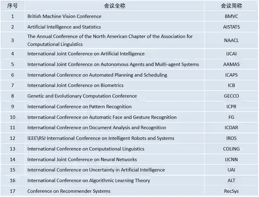 以及将 CCF 定为 A 类的 IJCAI 定为 B 类。