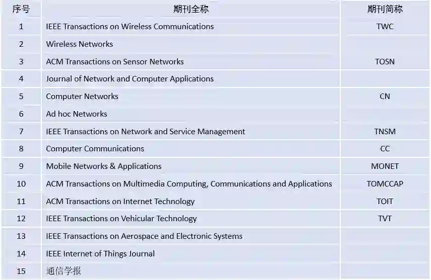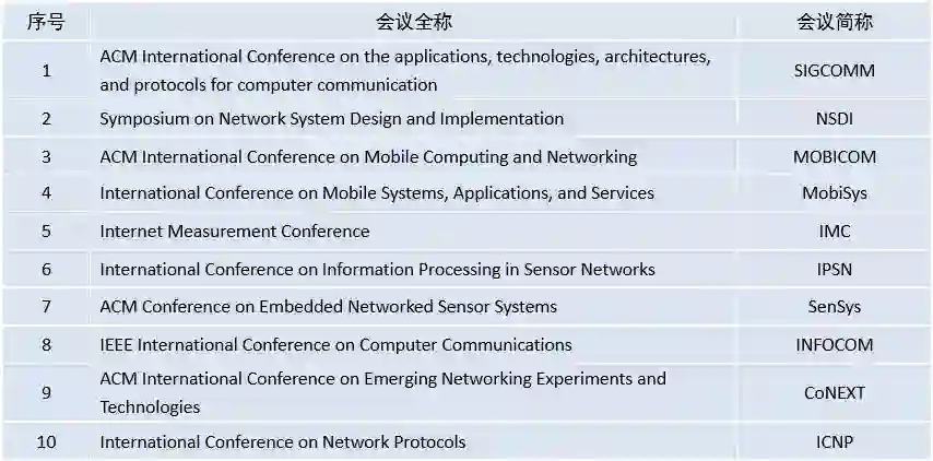 在计算机网络研究方向,清华推荐 A 类会议 10 个,B 类会议 14 个。A 类期刊 4 个,B 类期刊 15 个。