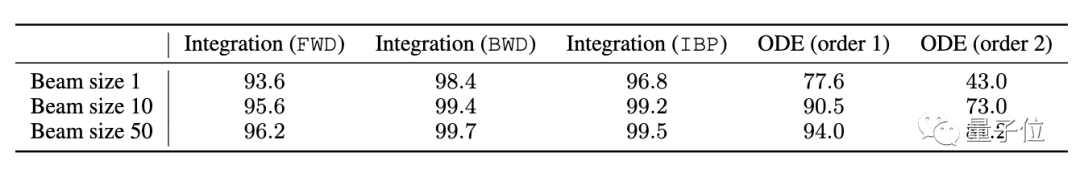 结果表明,对于微分方程,波束搜索解码能大大提高模型的准确率。