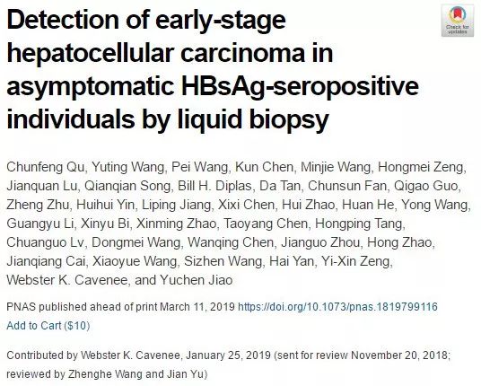 这项研究成果由国家癌症中心/中国医学科学院肿瘤医院团队与泛生子基因公司合作完成。论文作者之一、泛生子基因公司首席执行官王思振介绍,这项技术方法在本次研究中能够发现小于3厘米的早期肝癌。研究人员通过抽取外周血获取其中的细胞游离DNA突变和蛋白标志物信息,对331例甲胎蛋白和B超检测结果正常的乙肝病毒携带者进行筛查,检出24例阳性者,且在后续6至8个月追踪随访中,发现其中4例罹患肝癌。剩余307例阴性者,随访期内无一发现肝癌。