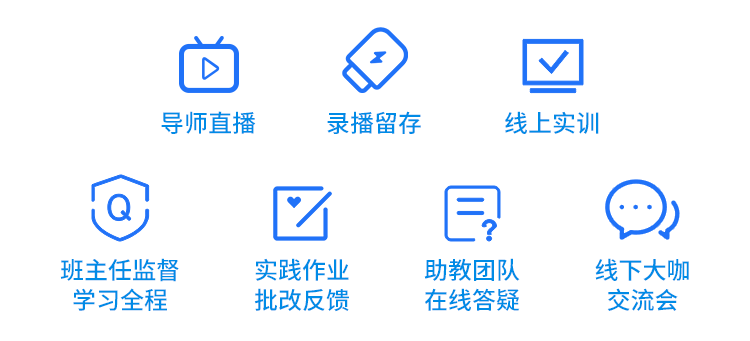 课程提供导师直播 + 录播留存 + 线上实训 + 班主任督导,以及不定期组织线下交流会(北上广深杭),届时会邀请廖雪峰及各位一线大厂的专家跟大家见面交流,促进行业发展,拓展个人圈子。