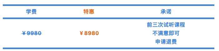 这里承诺:正式开课后 前 3 次课不满意,学员可提出退款,课程组将无理由退还全部学费。