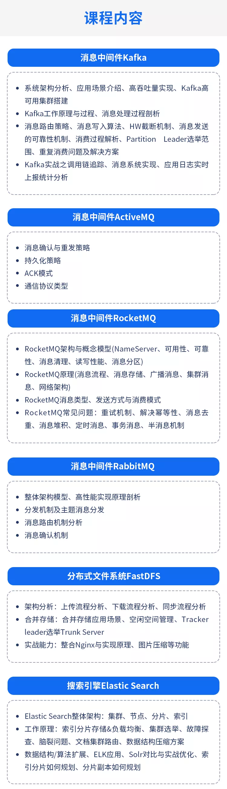 通过框架阶段的学习之后,会将一个单体架构的电商项目给到学员,然后通过分布式相关核心技术的学习,将单体架构进行分布式架构的项目重构,实现分布式的电商项目。