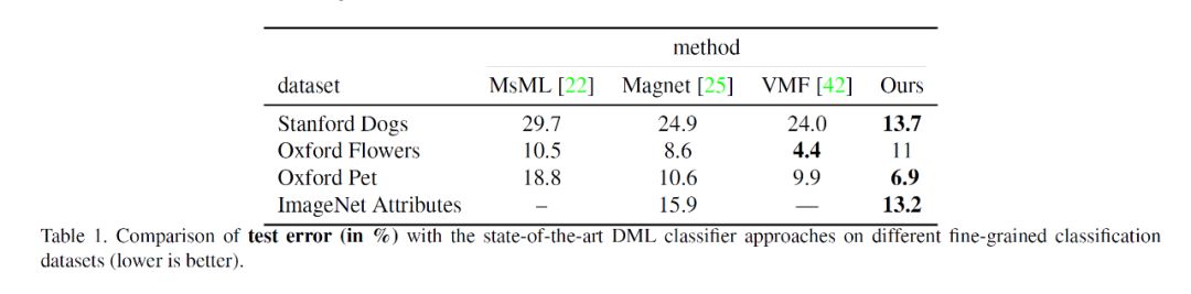 实验首先将 RepMet 整个模块作为分类器的性能在多个数据集上与其余 SOTA 方法做了对比,取得了一定的精度提升: