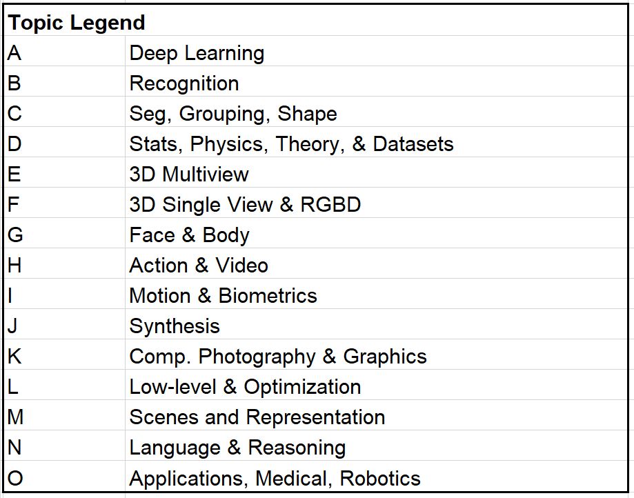 CVPR 2019 年共收到了 5165 篇有效提交论文,比去年 CVPR2018 增加了 56%,论文接收方面,本届大会共接收了 1300 论文,接收率接近 25.2%,截止本文截稿前统计共有 288 篇 Oral 论文。我们根据所有接收论文的细分方向做了一个柱状图供读者参考,可以看到深度学习,识别相关的论文仍然占有较大比例。