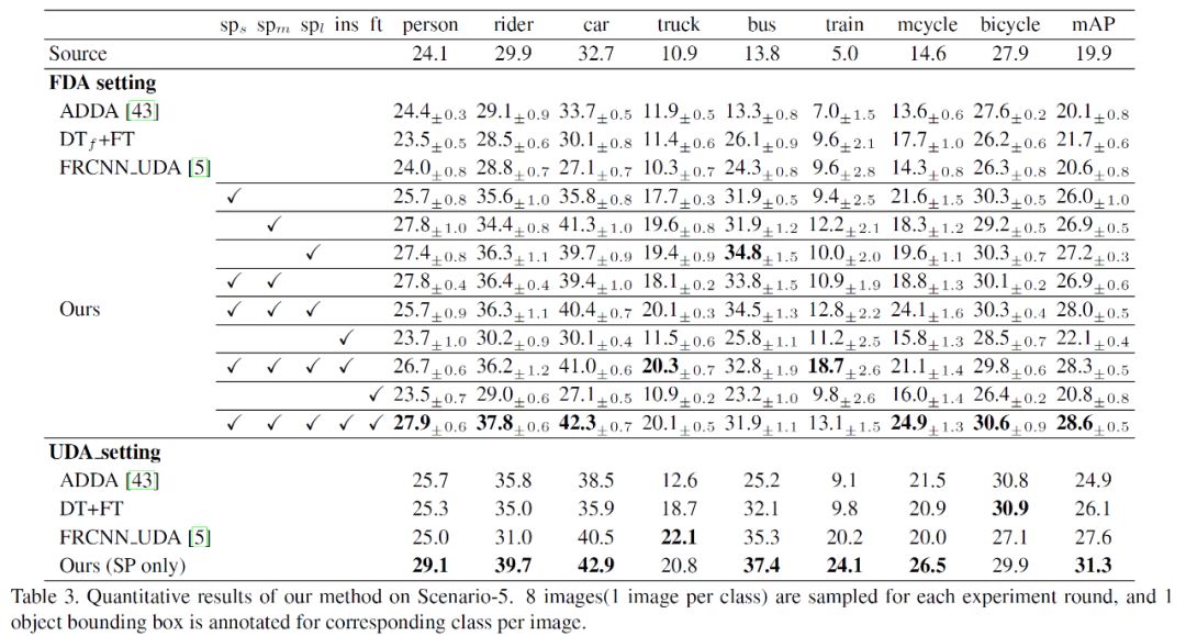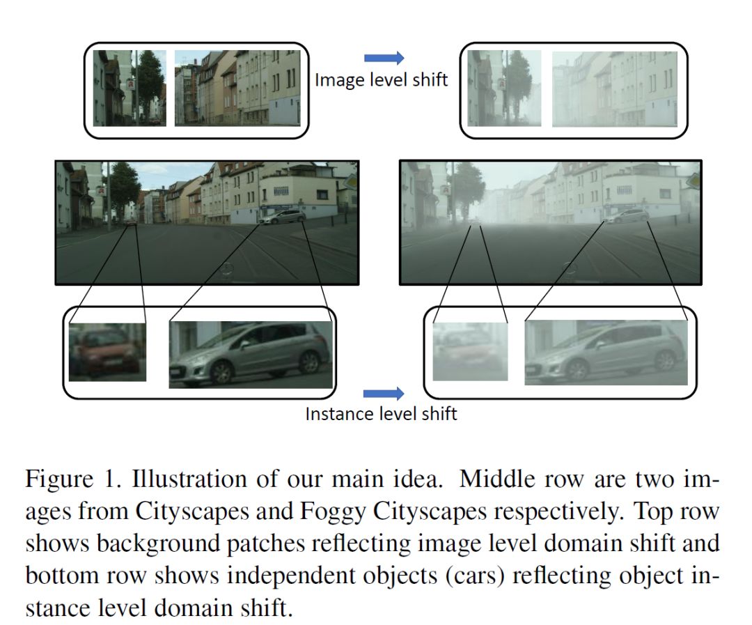 本篇论文着眼于以上问题,探索了仅仅依靠少量目标域标记数据来训练一个检测器完成区域适应的可能性,提出了名为 FAFRCNN(few-shot adaptive Faster R-CNN)的网络结构,这个新的框架由图像(image)与实例个体(instance)两层级的的适应模块组成,并搭配一个特征配对机制,与一个强力的正则化,配对机制的引入,使得图像层级的模块能够均衡地抽取并对齐成对的多粒度特征(multi-grain patch features),最终更好的捕捉全局的域变换(global domain shift),例如说光照,而在个体对象层级上,语义上成对匹配的个体特征能够更好地提供不同物体类别之间的区分度,消除不确定性。另一边,强化的正则引入,它能够使得适应过程训练更加稳定并且避免过度适应(over-adaption)问题的发生。