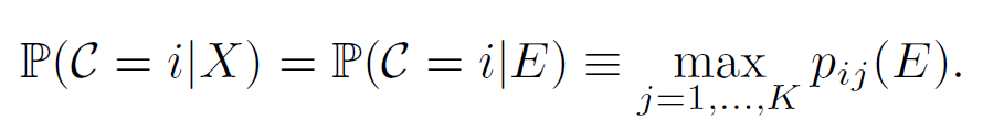 首先图像输入骨干网络并通过池化得到输入 RepMet 子网络模块的输入特征向量,输入特征进入到几个全连接层构成的 DML 嵌入模块得到对应的嵌入特征向量 E,之后便是距离衡量的模块,计算出嵌入特征 E 与多个类别的表征向量的距离,此距离也在之后用来计算所给出图像的后验概率,公式如下: