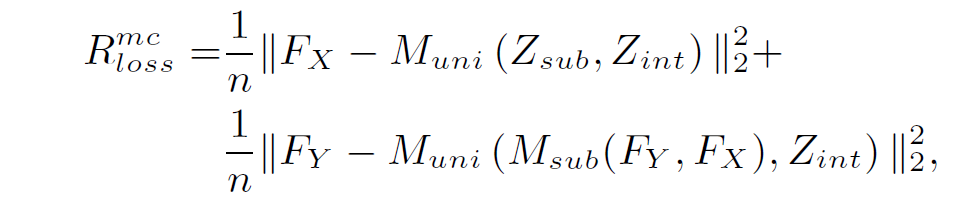 除此之外考虑到操作对称因素以及模型稳定因素,基于重构的均方误差(Mean Square Error,MSE)也作为另一部分的损失加载到模型的最后: