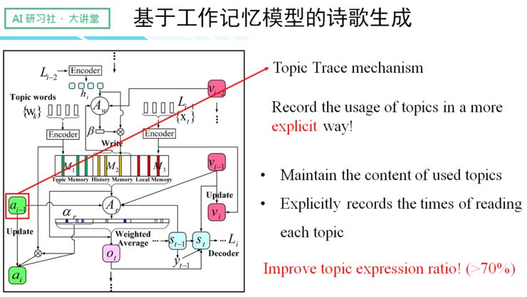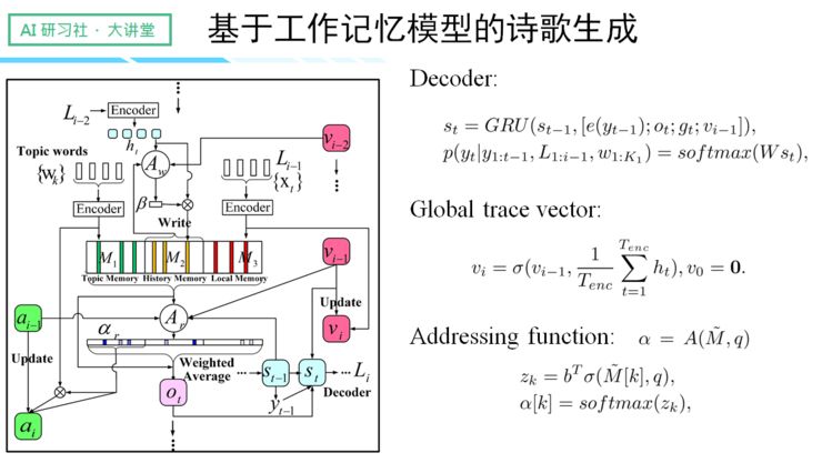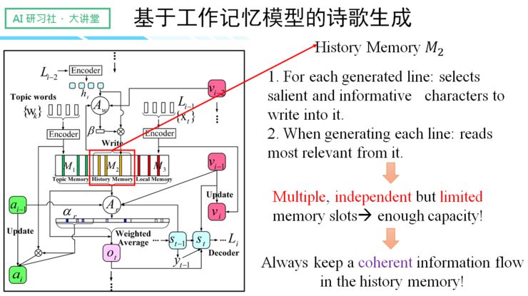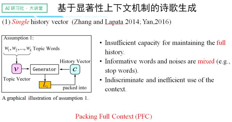 第一种是认为一首诗的生成过程中,历史信息可以被一个单独的历史向量存储和利用。