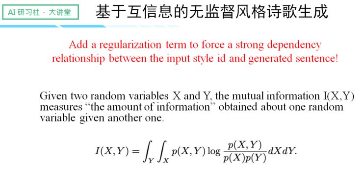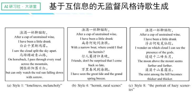 针对第一篇文章工作中存在的风格控制问题,我们又做了一项「基于互信息的无监督风格」的工作。众所周知,中国古诗具有不同的风格表达,其中三个最有代表性的分别是:边塞、闺怨和山水田园。