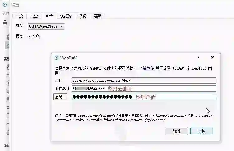 通过WebDAV连接坚果云,同步密码数据库