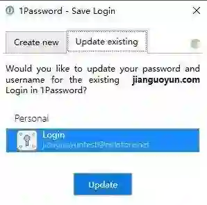 在浏览器登录账号时,可以直接右键调用出 1Password 进行自动填充账号和密码或者更新密码。