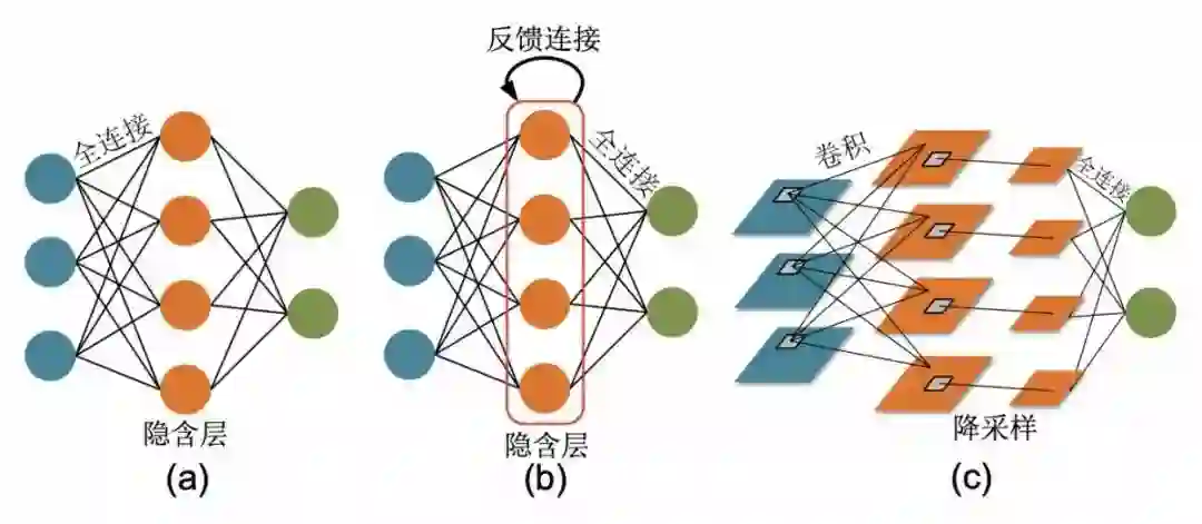 根据神经元的连接拓扑可以分为全连接神经网络、卷积神经网络、反馈神经网络等,如图2所示。