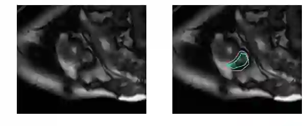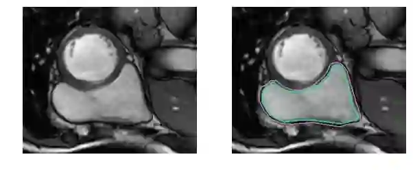 下面用几组图片来感受一下这种分割问题的困难。下图是右心室的MRI图片: