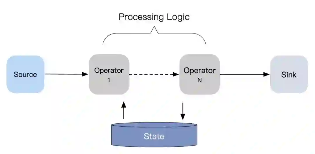流 -> 流:没有聚合操作的数据处理过程; -