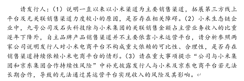 紧接着,证监会问出了更尖锐的实质问题:「分析公司对小米是否存在依赖,是否存在利益输送情况,主营业务是否具有稳定性和持续性」。