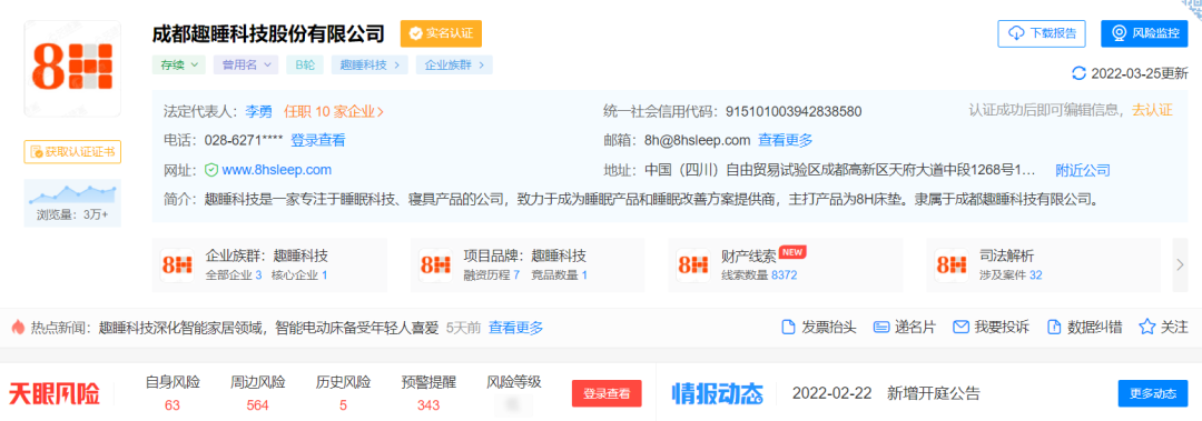 按照天眼查和招股书的自行披露信息,趣睡科技主营业务为易安装家具、家纺等家居产品的研发、设计、生产与销售。