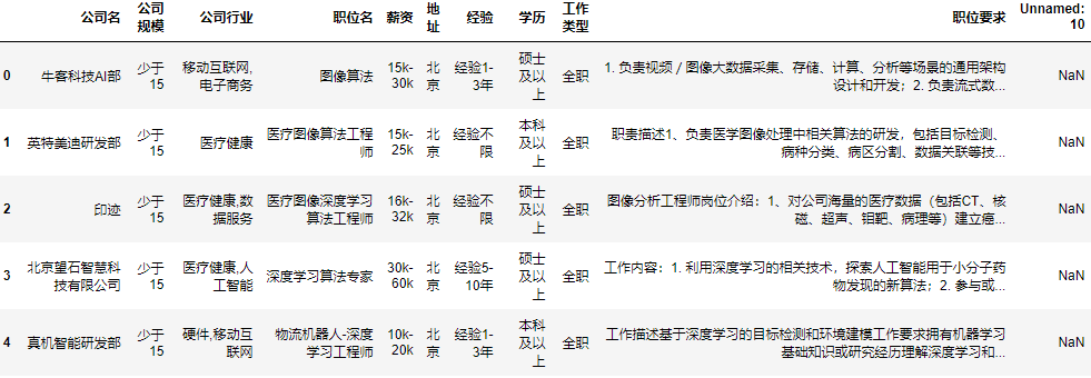 按照公司规模分批次爬取,分别保存在 job_csv文件夹下(命名从job_bj01.csv到job_bj06.csv)