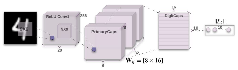 # Layer 3: Capsule layer. Routing algorithm works here.