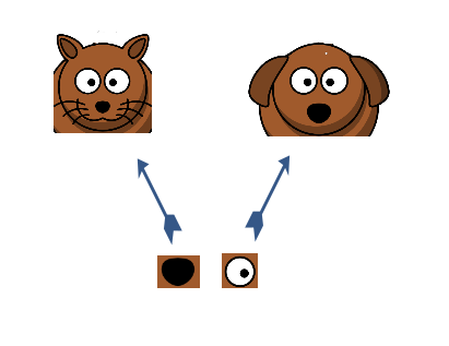 P(脸) = ( P(鼻子) & ( 2 x P(胡须) ) & P(嘴巴) & ( 2 x P(眼睛) ) & ( 2 x P(耳朵) ) ) OR