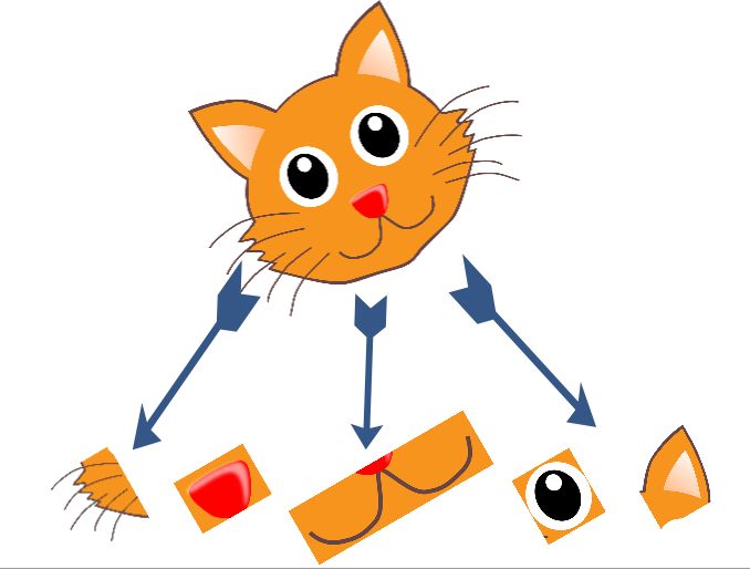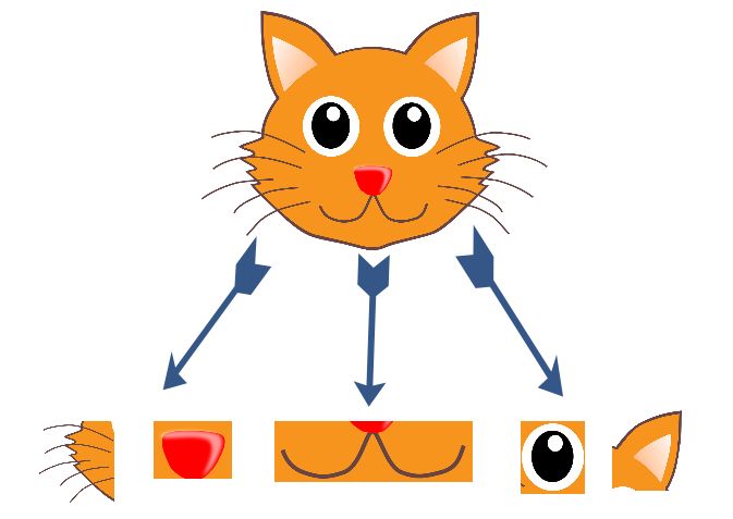 它是一只猫,你肯定猜对了吧!但是你是如何知道它是一只猫的呢?现在将这张图片进行分解: