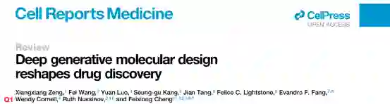 最近,由湖南大学曾湘祥教授、康奈尔大学王飞教授、西北大学Luo yuan教授、IBM TJ Watson研究中心Seung-gu Kang教授及Wendy Cornell教授、Mila唐建教授、劳伦斯利弗莫尔国家实验室Felice C. Lightstone教授、奥斯陆大学Evandro F. Fang教授、特拉维夫大学Ruth Nussinov教授等知名学者共同完成的一篇发表在Cell Reports Medicine(IF: 16.988)的文章“Deep Generative Molecular Design Reshapes Drug Discovery”,系统介绍了深度生成模型的基础知识及其在药物设计中的应用,并讨论了当前该领域发展的局限及未来的发展方向。
