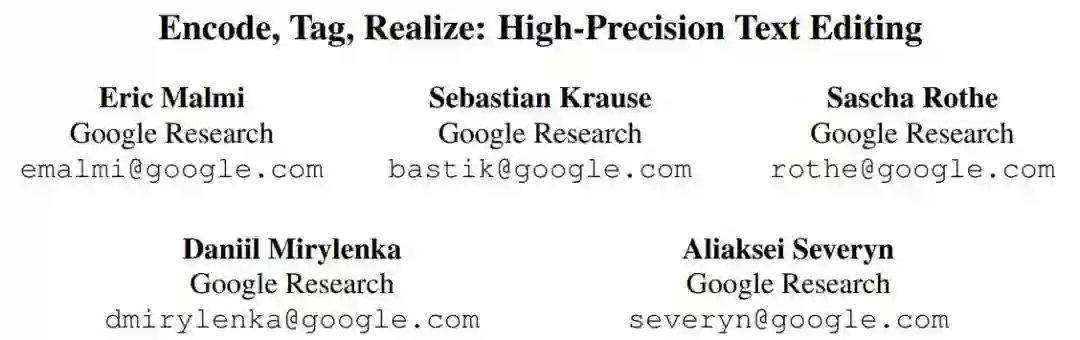 推断速度:LaserTagger 计算预测的速度是 seq2seq 基线模型的 100 倍,因此适合实时应用;