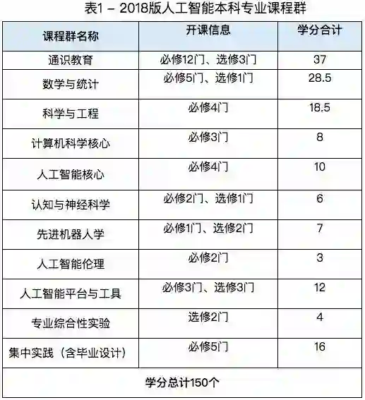 西安交大“人工智能本科专业课程设置”按课程群分类设置,包括通识教育、数学与统计、科学与工程、人工智能、计算机科学、机器人等11个课程群,共开设64门课程,其中必修课程41门、选修课程23门 (完成所需学分需选修其中12门)。