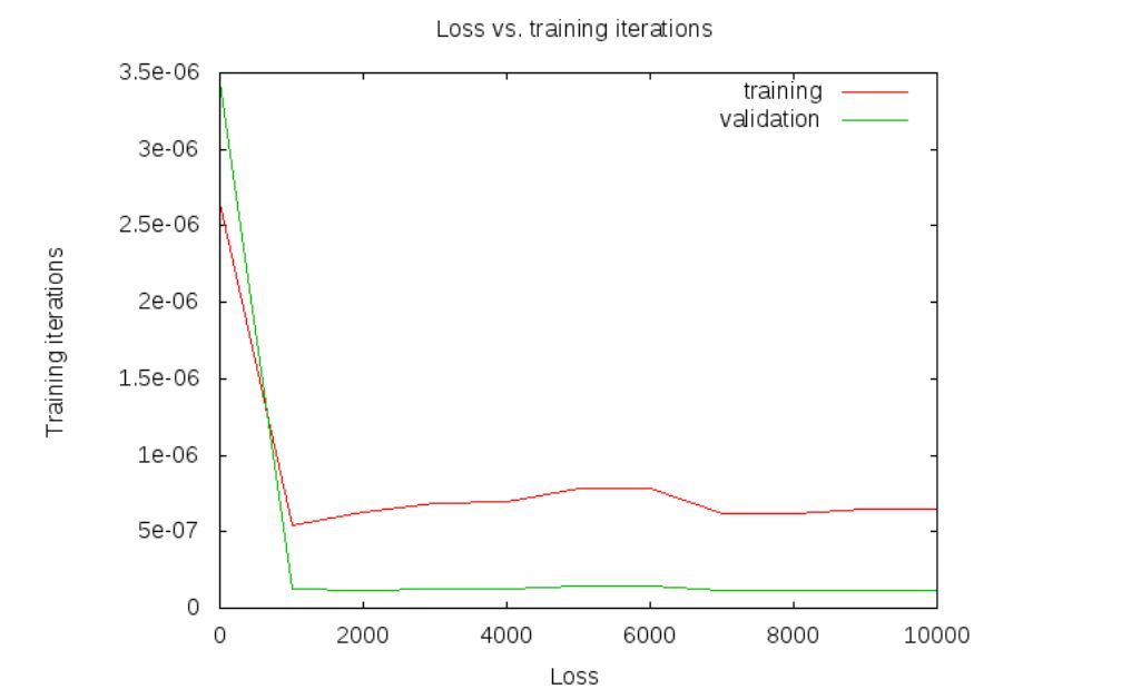 当我切换到使用不同的网络架构和不同的功能(见下文)时,我必须适当地更新solver.prototxt中的超参数。然而,相同的基本方法(提出一些超参数,运行网络,绘制训练和验证损失曲线)被证明是有用的,实际上,相同的超参数设置通常是接近最佳的,稍作修改。