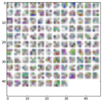 在Yuke的建议之后,我将初始网络结构中最后一个卷积层的权重可视化,看看是什么问题。问题是池已经太多了,所以到最后一层的输入是非常模糊的,网络的最终层(特别是仿射层)在这些模糊的时候无法区分不同的图像。