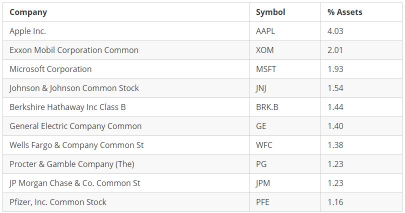 Table 2:Top 10 components of the S&P 500. Data from [2]