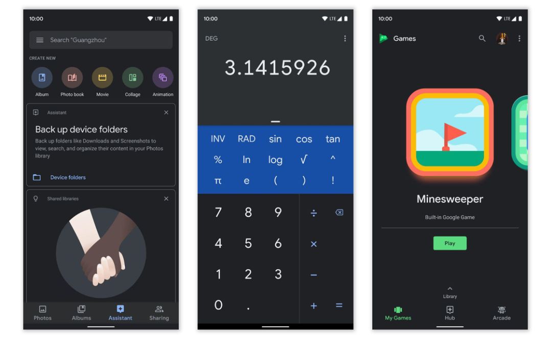 为了推动第三方应用对系统级暗色主题的适配,Google 自家应用自今年年初便开始了对暗色主题的支持,因此当我们在 Android Q Beta 3 中开启系统级暗色主题后,Google 相册、拨号甚至 Chrome(需要 Beta 版本)都能自动切换为暗色主题。