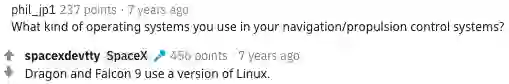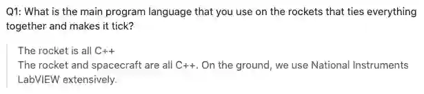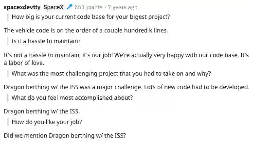终于找到 2013 年 SpaceX 的软件工程师在 Reddit 做过一次公开回应,回答网友们的提问。